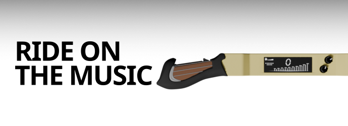 デザインモチーフとしてギターのボディ, ネック, フレット, 弦が用いられており、まるでギターを弾くような操作感を味わえます。